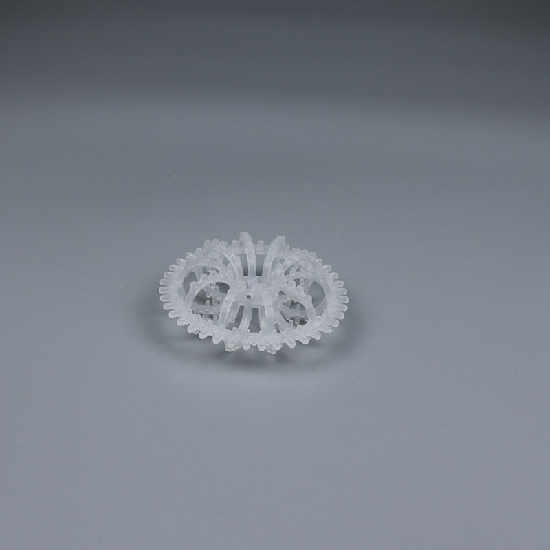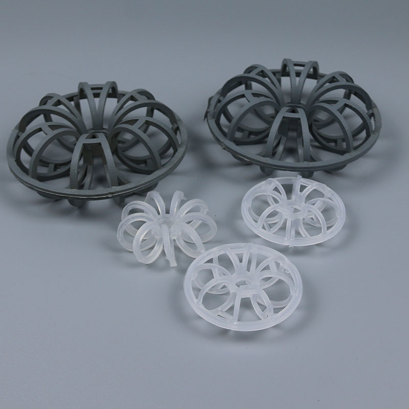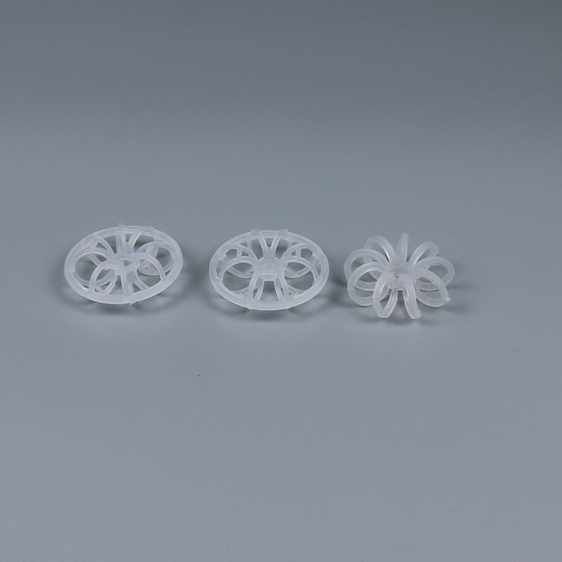 塑料花環(huán)填料是由許多圓環(huán)結(jié)繞而成,由于填料的空隙處能有較高的持液量,可使塔內(nèi)液體的停留時間較長,從而增加了氣液兩相的接觸時間,提高了填料的傳質(zhì)效率?;ōh(huán)填料具有空隙率大,壓降和傳質(zhì)單元高度低,泛點(diǎn)高,氣液接觸充分,比重小,傳質(zhì)效率高等特點(diǎn),多用于氣體洗滌、凈化塔中。